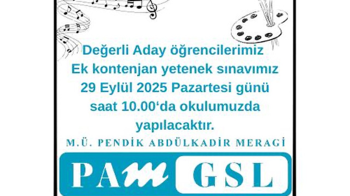 Marmara Üniversitesi Pendik Abdülkadir Meragi Güzel Sanatlar Lisesi Okulumuzda Ek Kontenjan Yetenek Sınavı