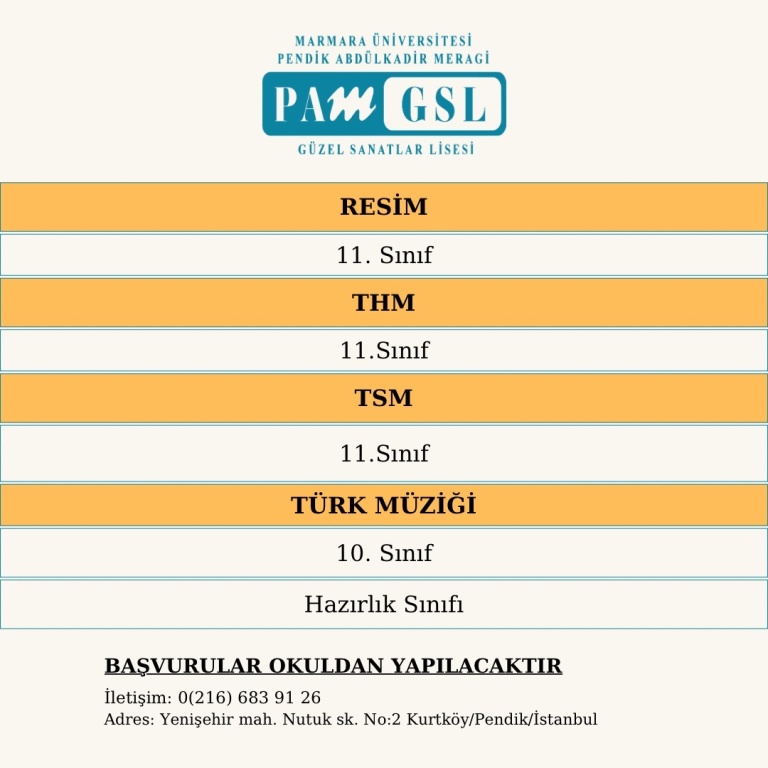 Ek Kontenjan Sınav Duyurusu Marmara Üniversitesi Pendik Abdülkadir Meragi Güzel Sanatlar Lisesinde yeteneklerini katlamak ister misin?